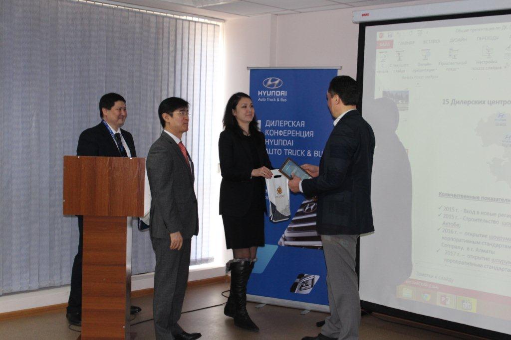 Кроме того, на конференции состоялось награждение лучших дилеров Hyundai Auto Truck & Bus по итогам 2014 года. По результатам продаж были отмечены компании Hyundai Ontustik из Шымкента и Alinar Auto из Алматы. Лидером по сервисному обслуживанию была признана столичная компания Truck Auto.