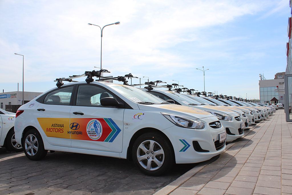 Для обслуживания Чемпионата «Астана Моторс» предоставляет 30 автомобилей Hyundai: компактные Accent для велокоманд и обслуживающего персонала, а также модели среднего, бизнес- классов и кроссоверы для VIP гостей.