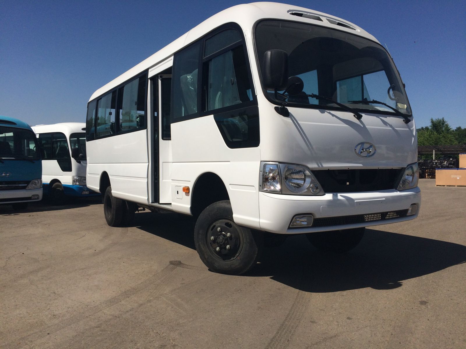 ТОО «Hyundai Trans Auto» начал производство полноприводных автобусов County. Данный тип модификации рассчитан для перевозки пассажиров в тяжелых сложных условиях, где нет дорог и высокая нагрузка и требования к автомобилю: горно – добывающей промышленности, нефтеперарбатывающей отрасли.